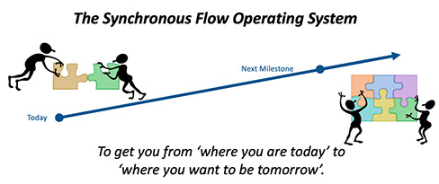 The Synchronous Flow Operating System explicitly connects every role and every individual in your company to the goal of the company – to make more money now and in the future. No other consulting group can help you connect the dots like we do. Every team member in your business will know how they connect to the success of your business and have a specific way to keep score. They will know how they are contributing to the success of your business, and know when they are winning and when they are not.