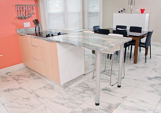 “It’s great because you can change your cabinets, your wallpaper and your floor, and our whites work well with any color you choose–which is a significant selling advantage in our current economy. Over 90 percent of the slabs we sell are 3cm and used in kitchens; the popularity is growing and we don’t see any end in sight.”